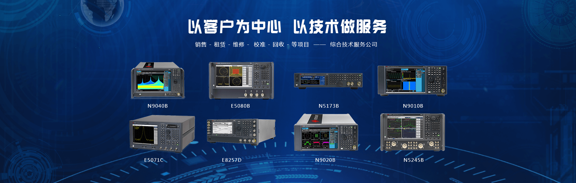 主要產(chǎn)品有:頻譜分析儀,網(wǎng)絡(luò)分析儀,綜合測試儀,藍牙wifi測試儀,噪聲系數(shù)測試儀,接收機,電話測試儀,高、低頻信號源,音、視頻信號分析儀,高精度萬用表, LCR/ 電橋、各種通信電源等。經(jīng)營的儀器品牌主要有:Keysight/Agilent (惠普 / 安捷倫)、 R/S (羅德 & 施瓦茨)、 Anritsu (安立)、Litepoint、 FLUK( 福祿克 ) 、 TEK (泰克)等。